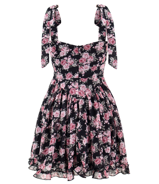 2025 new floral dress women's bow waist tea break dress suspenders short skirt R0014
