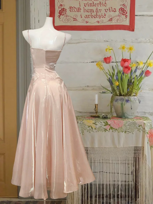 Light pink satin suspender waist slim fit A-line maxi ball gown R6066