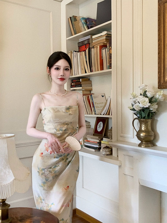 New style ink painting dress women's summer new long party dress S6034