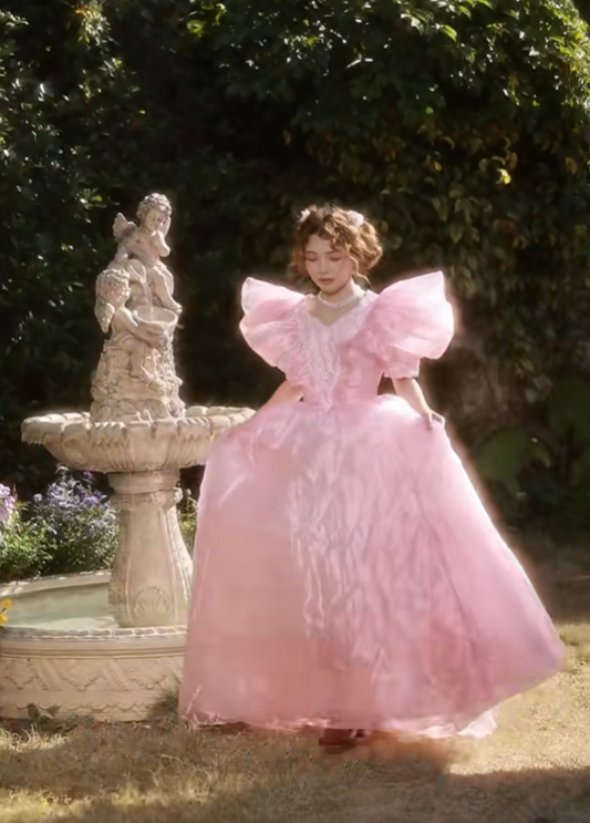 Pink Fairy Strapless Waist-cinching Puffy Skirt Long Ball Gown R6565