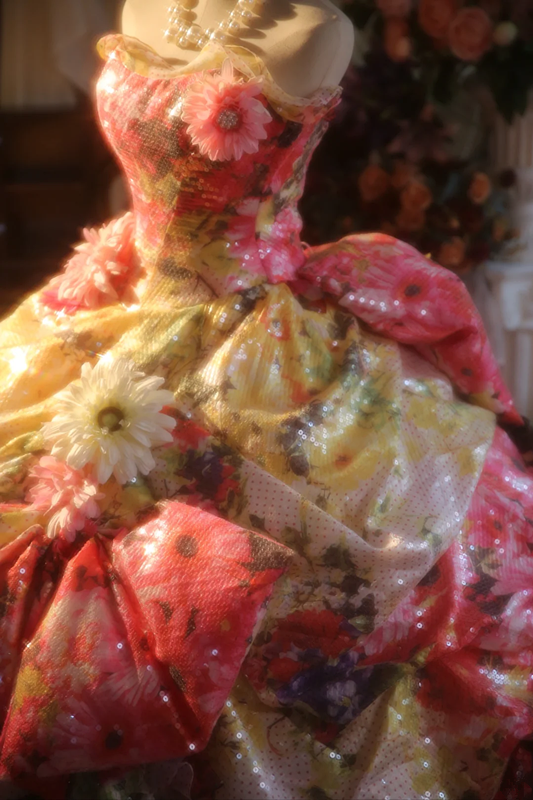 Pink retro floral strapless waist-cinching ball gown/bridal dress R7277