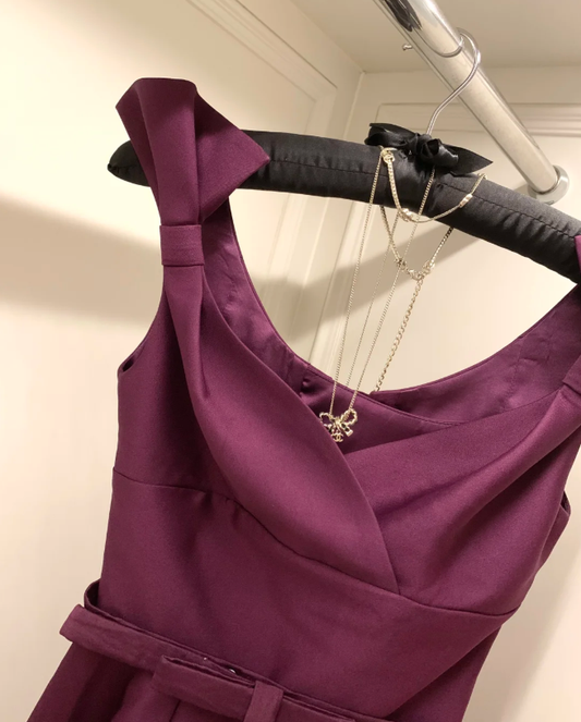 Purple bow strap waist slim fit A-line short skirt homecoming dress R4154