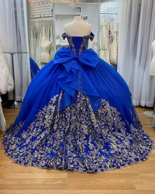 Royal Blue A-Line Ball Gown Long Prom Dresses, Blue Evening Dresses S3356