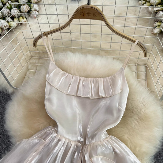 Suspender dress French style high-end waist a-line birthday puffy short skirt R0609