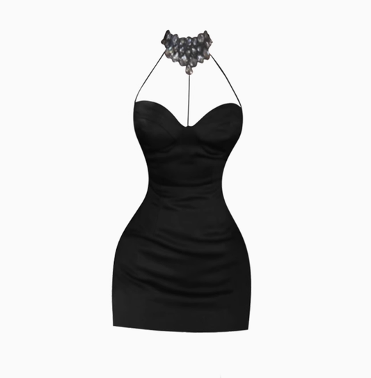 Temperament diamond-studded halter neck dress, sexy waist and hip skirt R0554