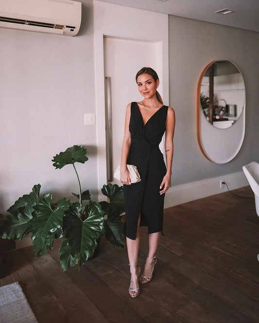 Black elegant satin waist slim fit simple skirt short skirt homecoming dress R4175