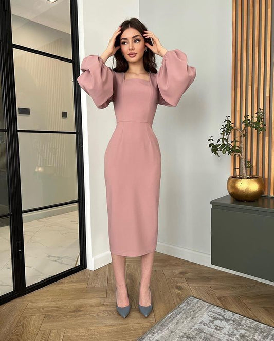 Women Prom Dresses Square Neck Tea Length Formal Evening Dress S5379