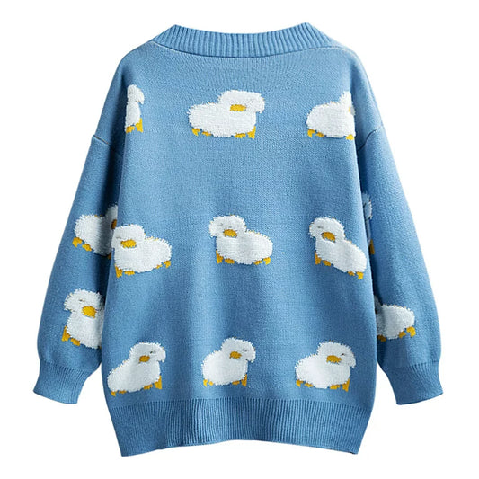 Women Oversized Knitting Cardigan Coat Cute Sheep Buttons Front with Pocket Loose Sweater Casual Jackets S2798