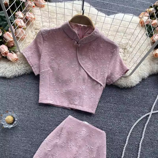 women's summer wear new short top two-piece trendy set S4607