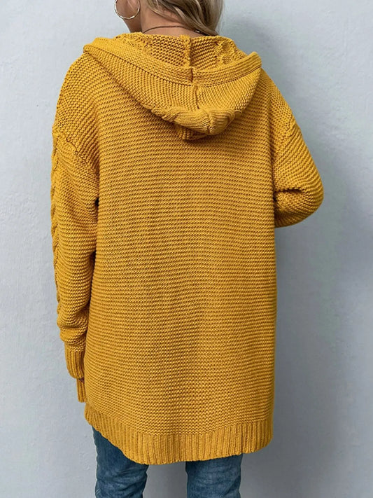 Women's Sweater Cardigan Cable-Knit Longline Hooded Cardigan S2779