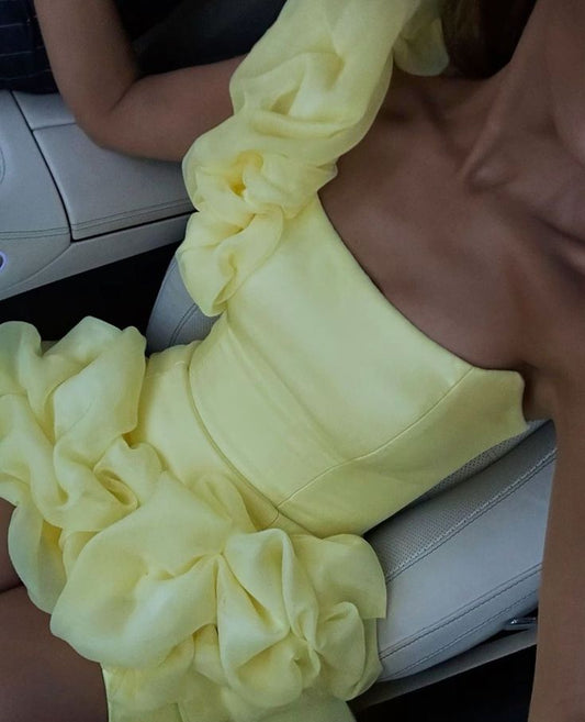Yellow One Shoudler Sleeveless Homecoming Dress S6935
