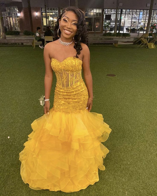 Yellow Mermaid Long Prom Dresses for Women, Evening Birthday Gown For Black Girl S6801