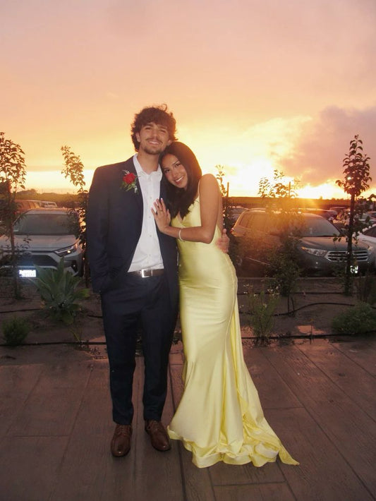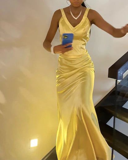 Yellow Mermaid Backless Party Prom Dresses Long Evening Dress S6595