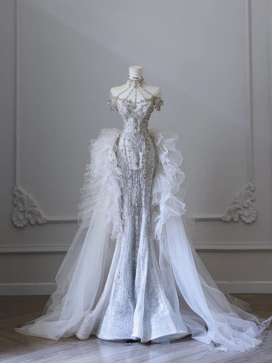 Elegant Mermaid Sweetheart Tulle Lace Long Wedding Dresses S7258