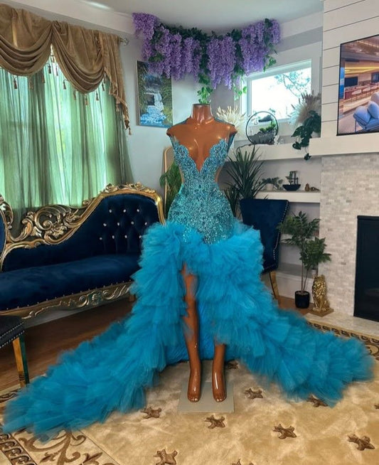 Blue A-Line Stunning Vintage Evening Ball Gown S7260