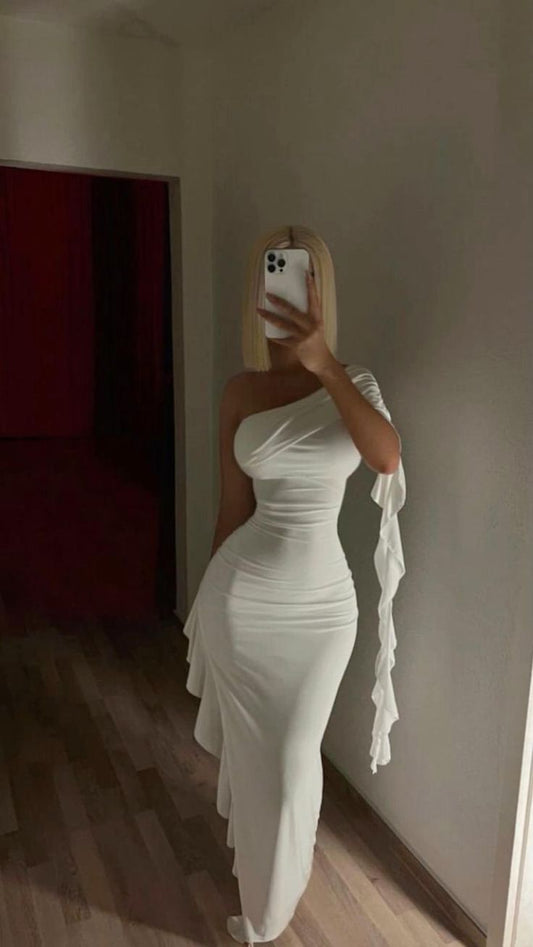 White One Shoulder Long Evening Dresses Prom Gown S6977