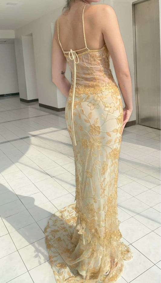 Gorgeous Yellow Beaded Mermaid Evening Dress Long Prom Dress S6792