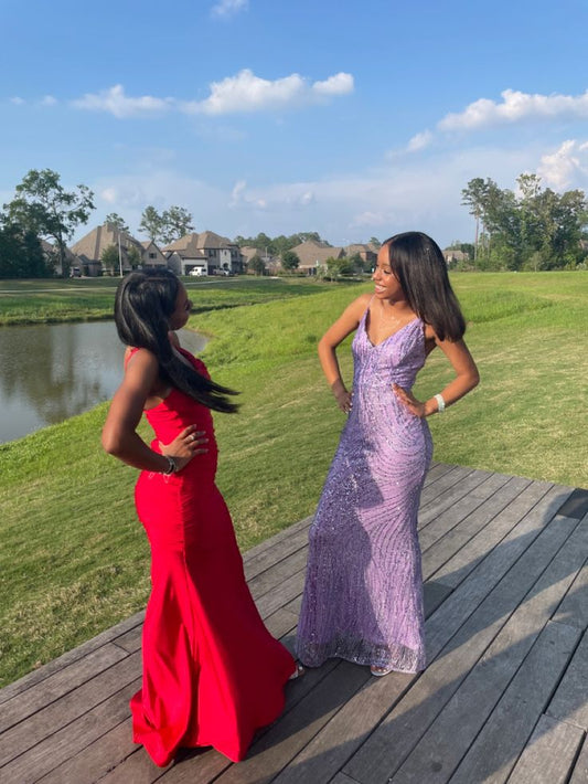 Elegant Lilac Mermaid Prom Dresses Long Evening Dress S6574