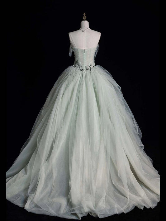 A Line Tulle Prom Dress Strapless Long Prom Dresses Birthday Gown S6549