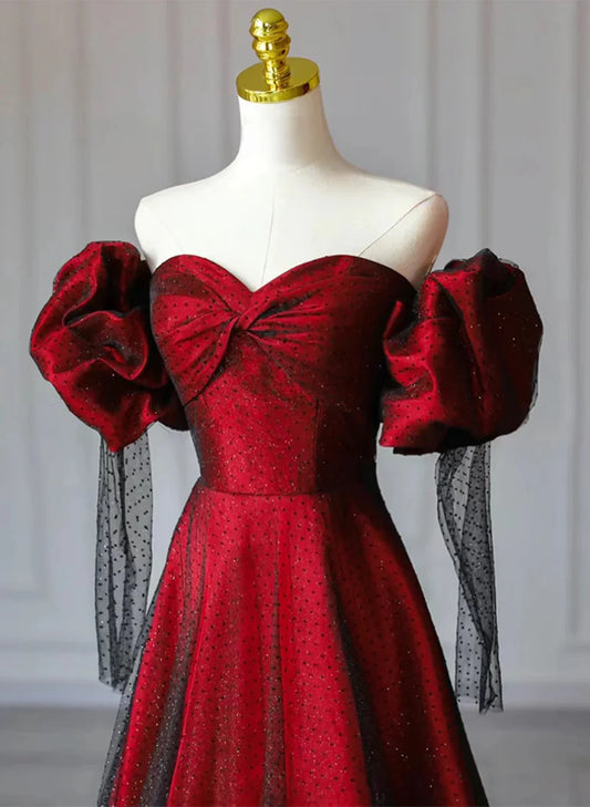 Black and Red Off Shoulder Sweetheart Party Dress, A-line Long Evening Dress S6563