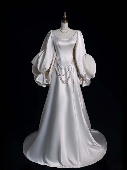 A Line Round Neck Satin Wedding Dresses Long Bridal Gowns S6561