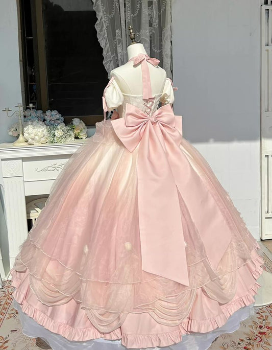Gradient Color Quinceanera Dress Halter Bow Floor Length Ball Gown Birthday Party Dress S6381