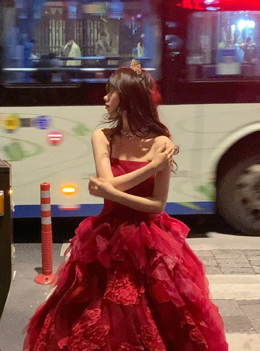 A-line Red Elegant Long Prom Dresses Evening Dress S6373