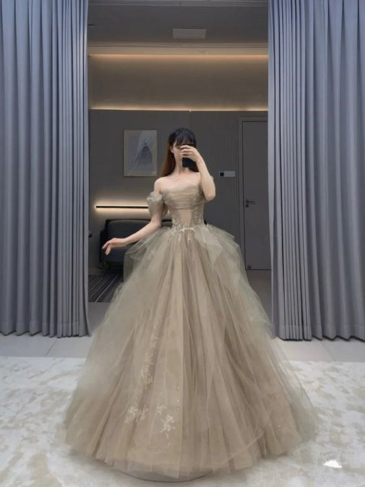 Ball Gown Off The Shoulder Long Prom Dress Tulle Evening Dress S6346