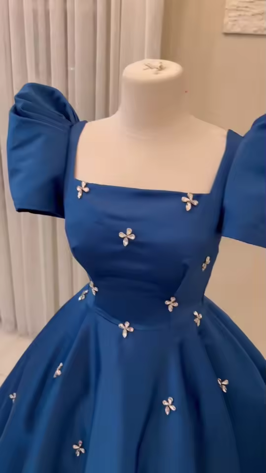 Retro Square Neck Prom Dress Floor Length Dresses Rhinestone Appliques Formal Occasion Dresses S6355