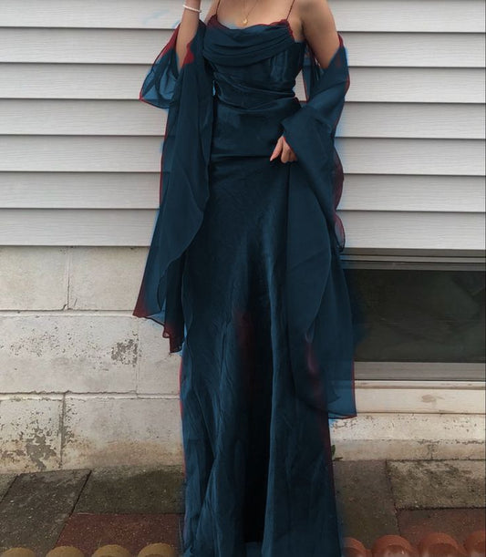 Long Spaghetti Straps Simple Prom Dress Birthday Outfits S6268