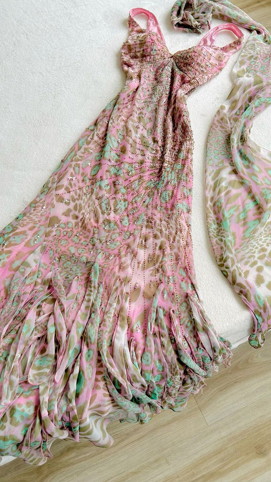 Leopard print Fashion Evening Gown Vintage Long Prom Dress S6132