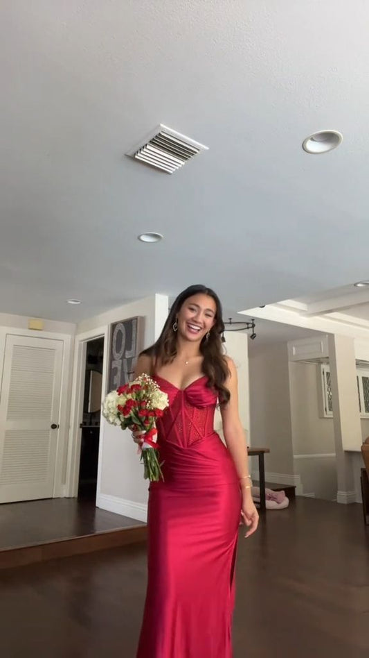 Red Mermaid Prom Dress Simple Long Party Dress S6024