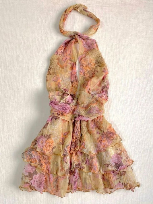 Floral Chiffon Short Prom Dress Halter Homecoming Dress S6019