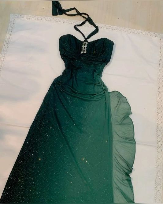 Elegant Halter Straps Ombre Green Long Chiffon Prom Dress Long Party Dress S6062