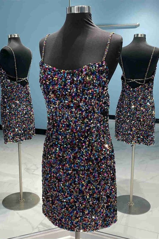 Chic Colorful Sequined Short Bodycon Dress S5322