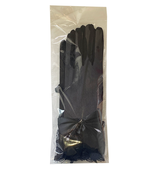 Hook finger bridal wedding gloves black short lace bow mesh sleeves thin style S6280