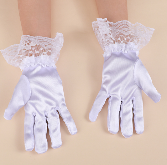 Children's bow gloves bride wedding flower girl lace lace satin student performance dress gloves S6270