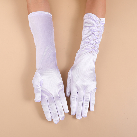 French satin wedding gloves full finger photo etiquette gloves retro dance banquet costume gloves S6269