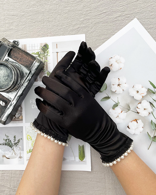 Summer hook finger nail beaded satin bridal gloves prom gloves wedding party banquet elegant S6276