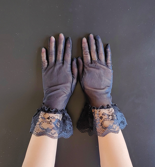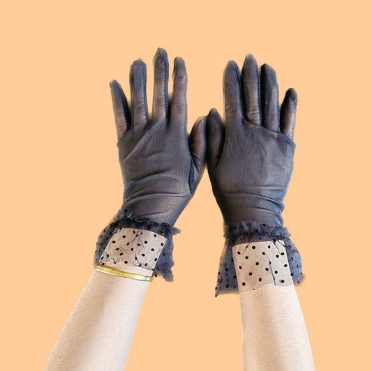 Breathable mesh gloves lace bow Hepburn style etiquette black French retro dress S6267