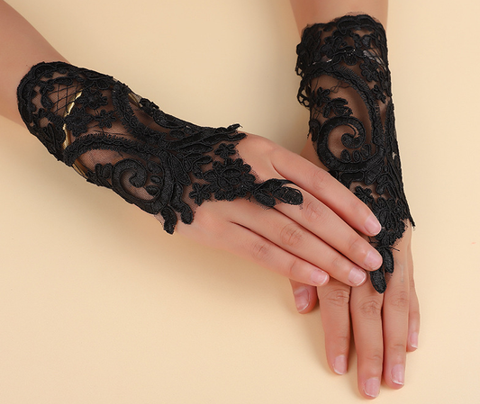 Summer thin lace mesh gloves ladies short black white wedding dress bride wedding elegant S6278