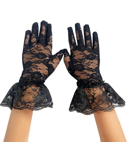 Children's elastic retro black lace lace mesh gloves white bride hollow thin sunscreen S6254