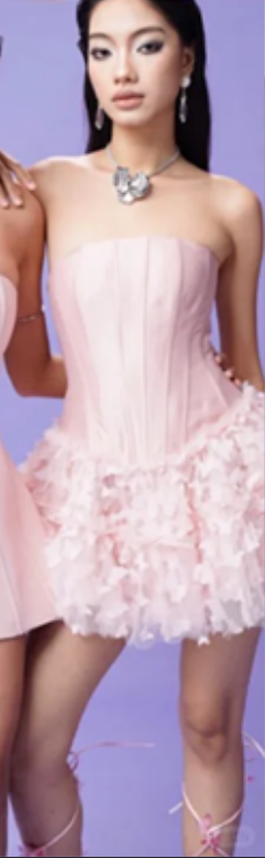 Pink tube top slim waist puffy skirt short skirt homecoming dress R4640