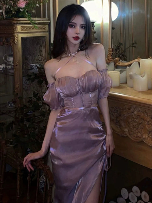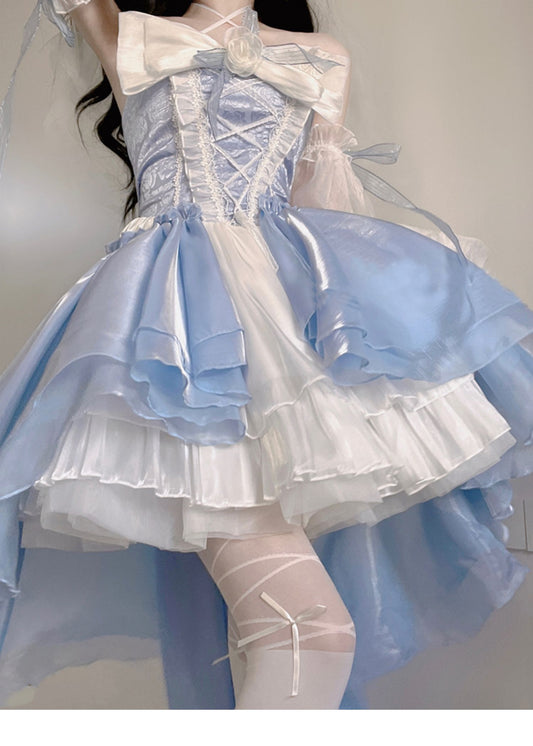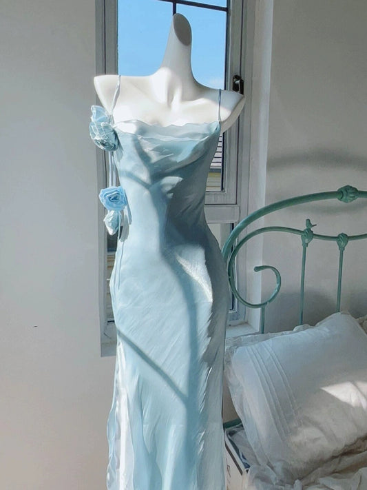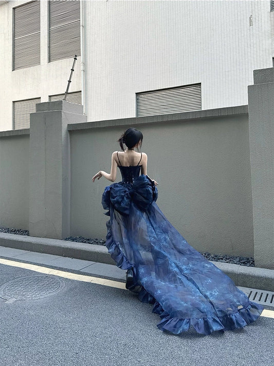 French style super fairy blue suspender dress women vintage princess long dress S5743