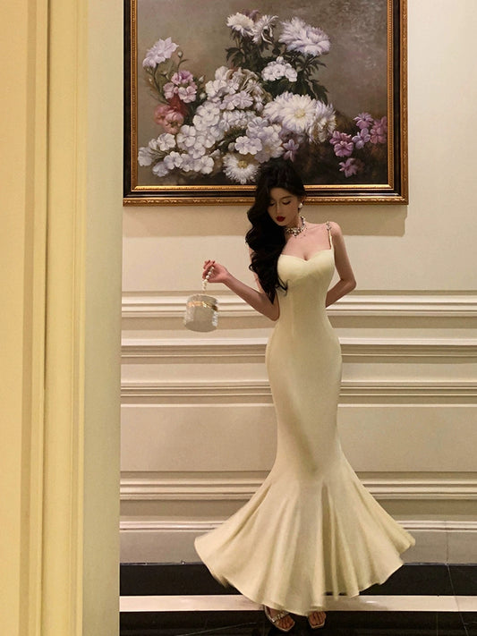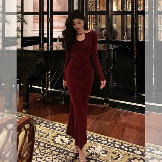French Hepburn style velvet dress backless slit long dress party dress S5696