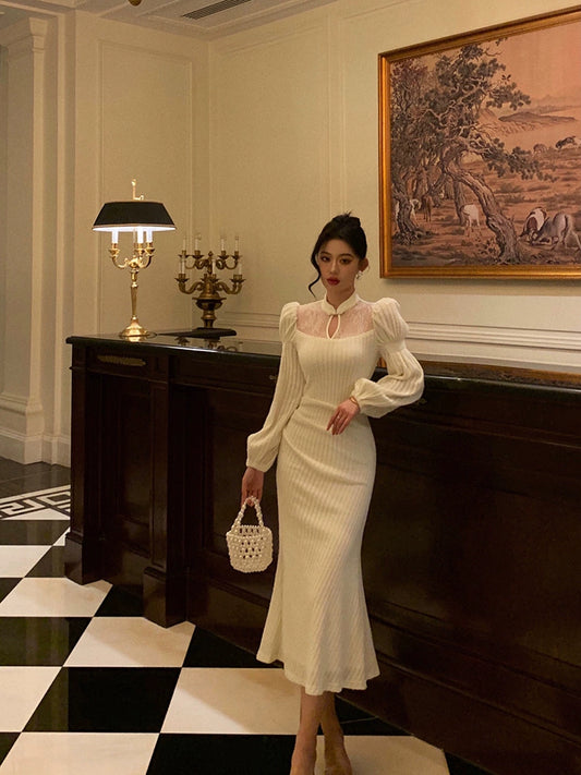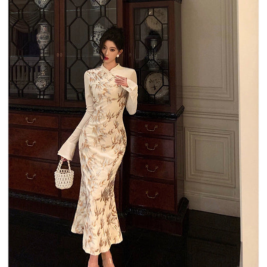 New Chinese cheongsam dress new gentle lantern sleeve party dress S5695