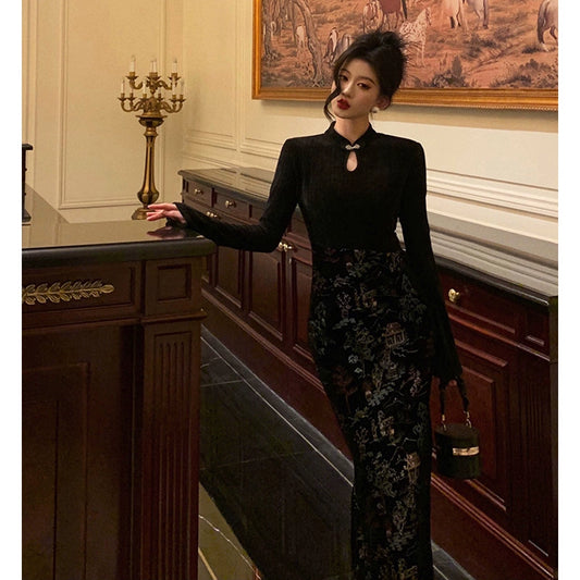 Velvet embroidered cheongsam dress for women new style national style party dress S5694