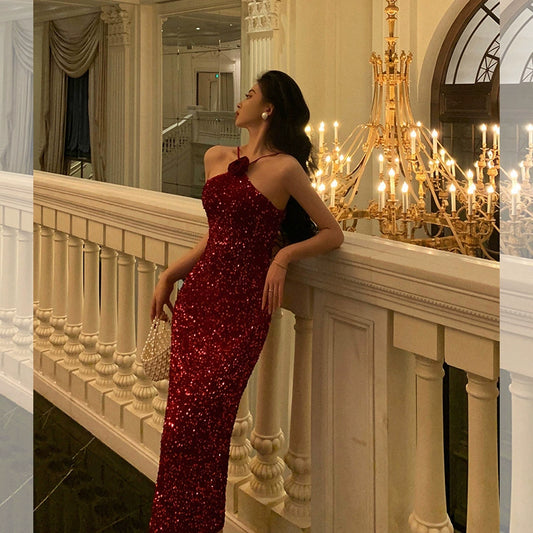 Banquet velvet sequined dress winter new sexy dress long party dress S5697