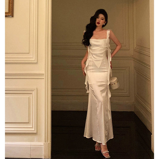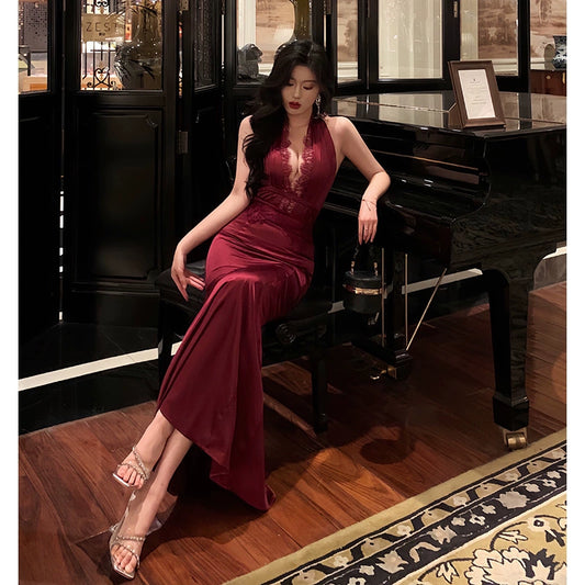Sexy halter neck dress for women summer new style banquet satin dress S5679