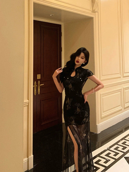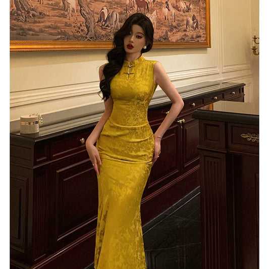 New Chinese jacquard cheongsam dress for women new style national style retro party dress S5686
